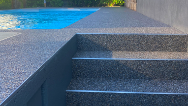 Como una alfombra natural antideslizante y anti “isla de calor”, ideal para caminar descalzo con seguridad. Para un borde de piscina y zona de solárium con efecto “wow”.